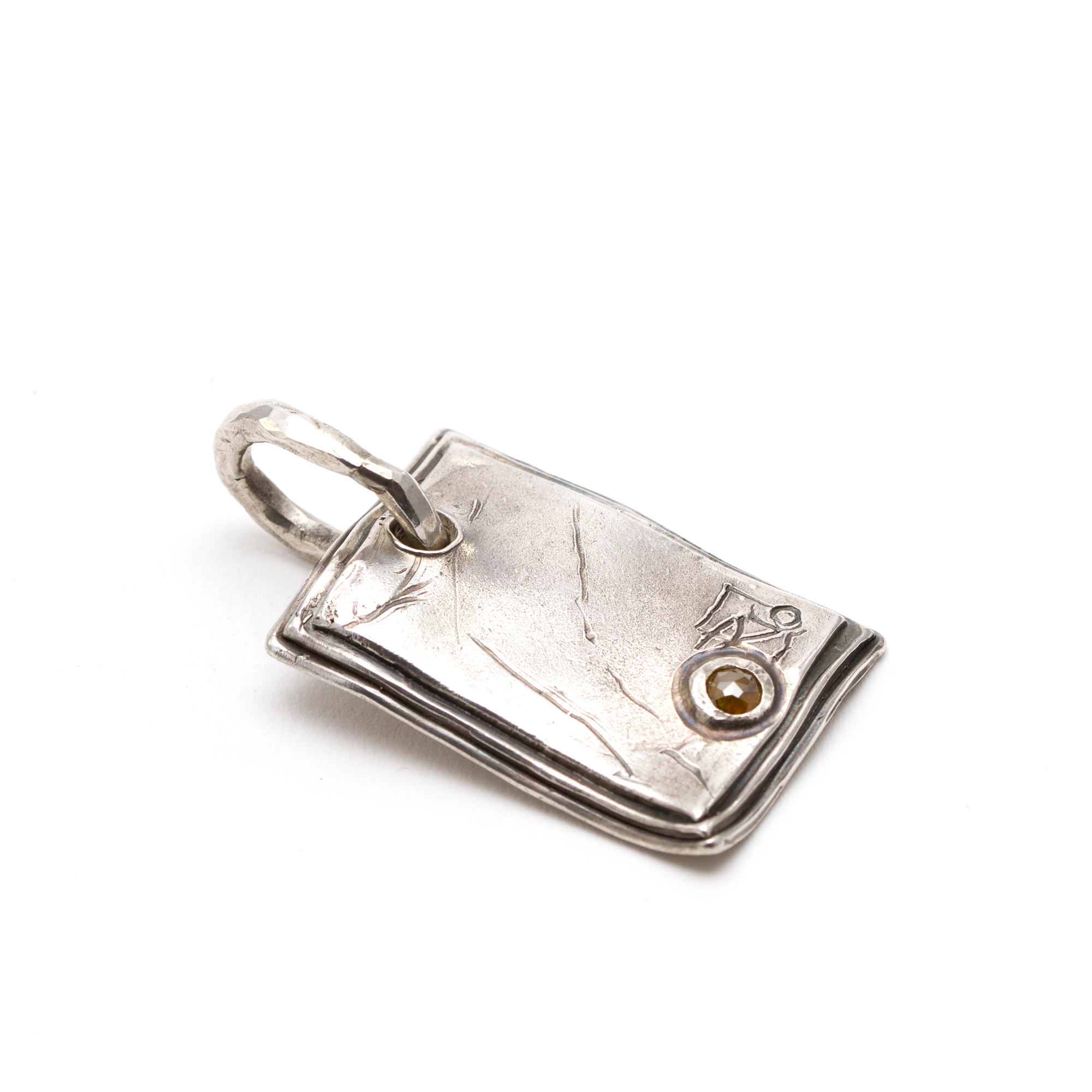 Markanter Anhänger aus Sterlingsilber, mit einem gelben Diamanten im Rosenschliff.
