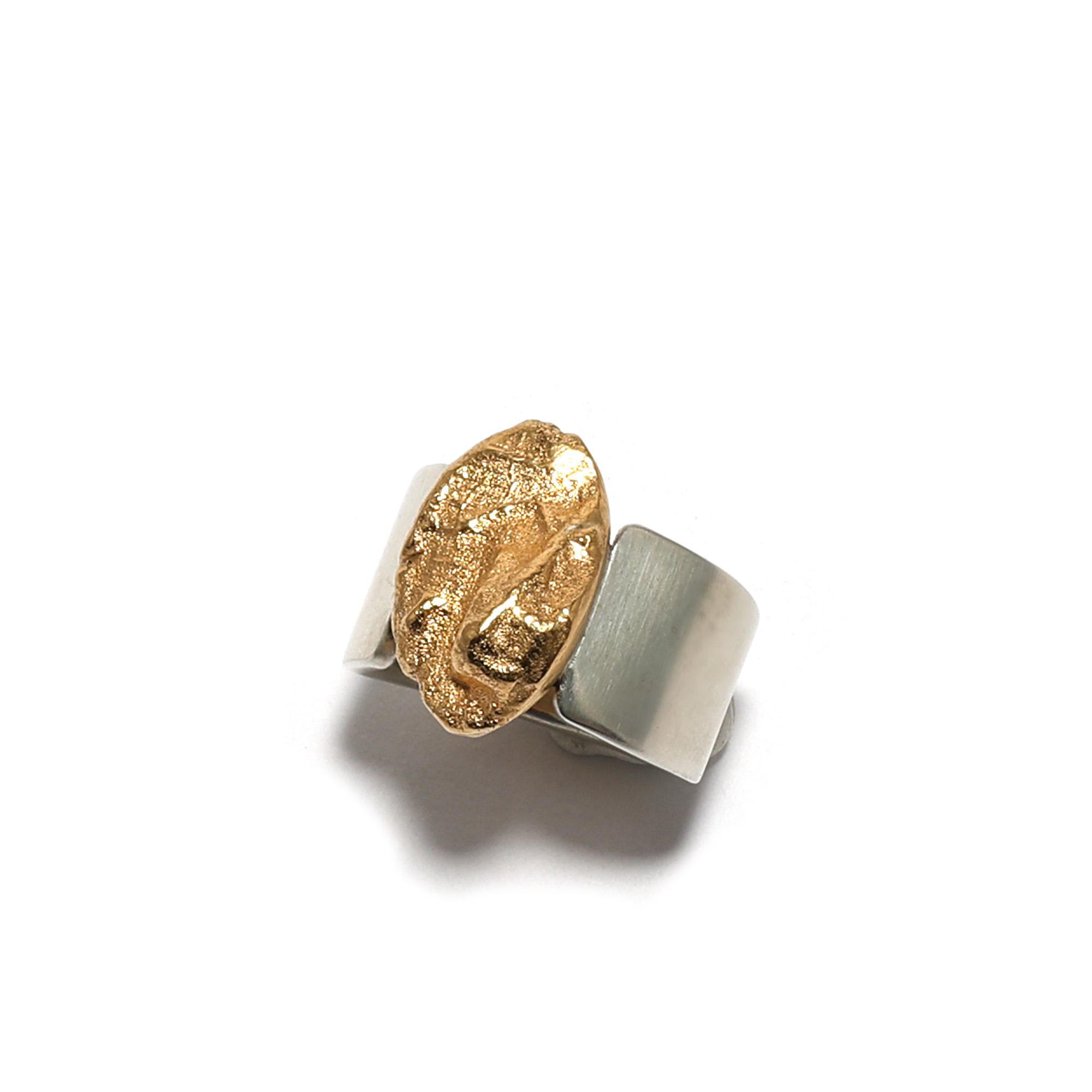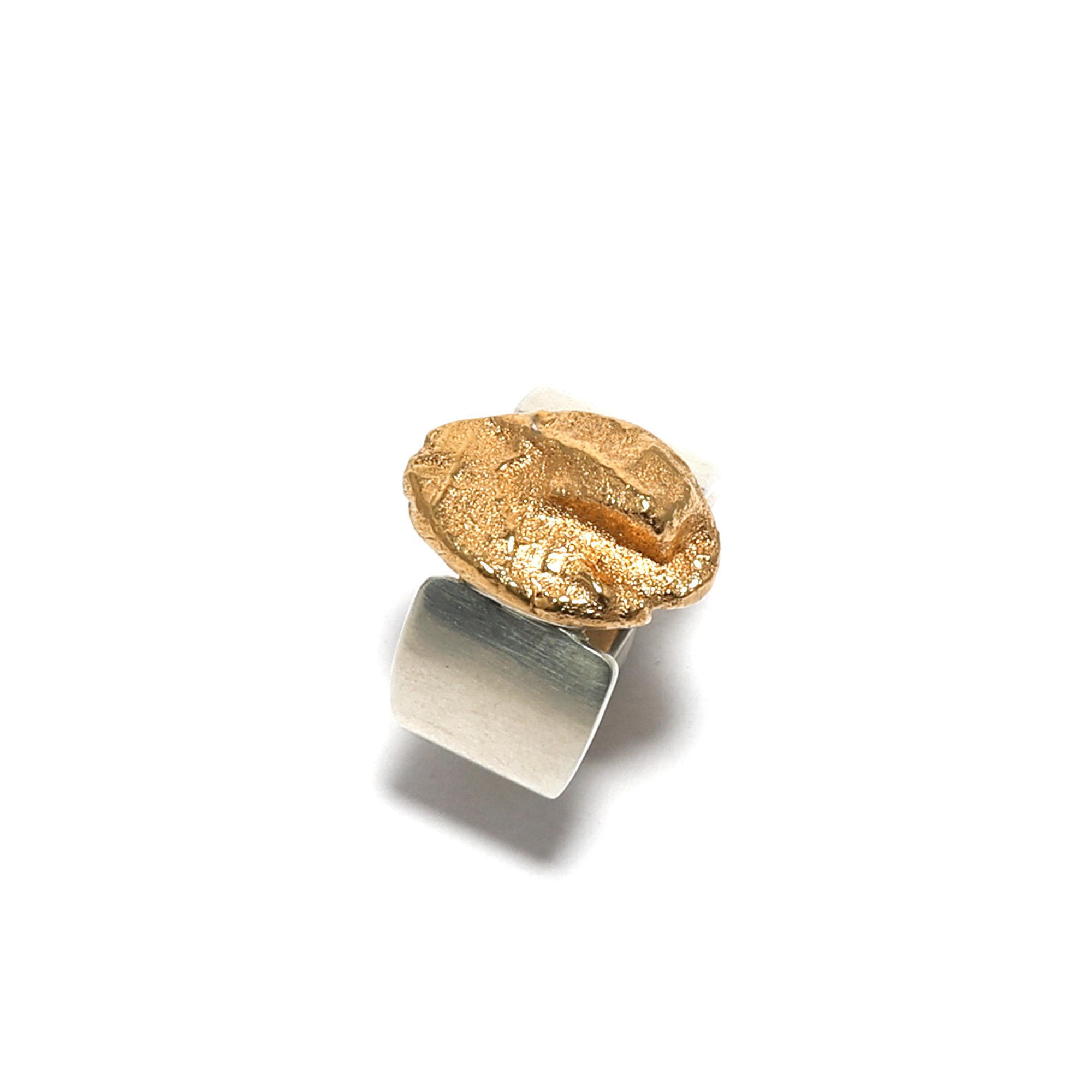 Silberring „Goldinsel“, mit feingoldplattiertem Mittelteil